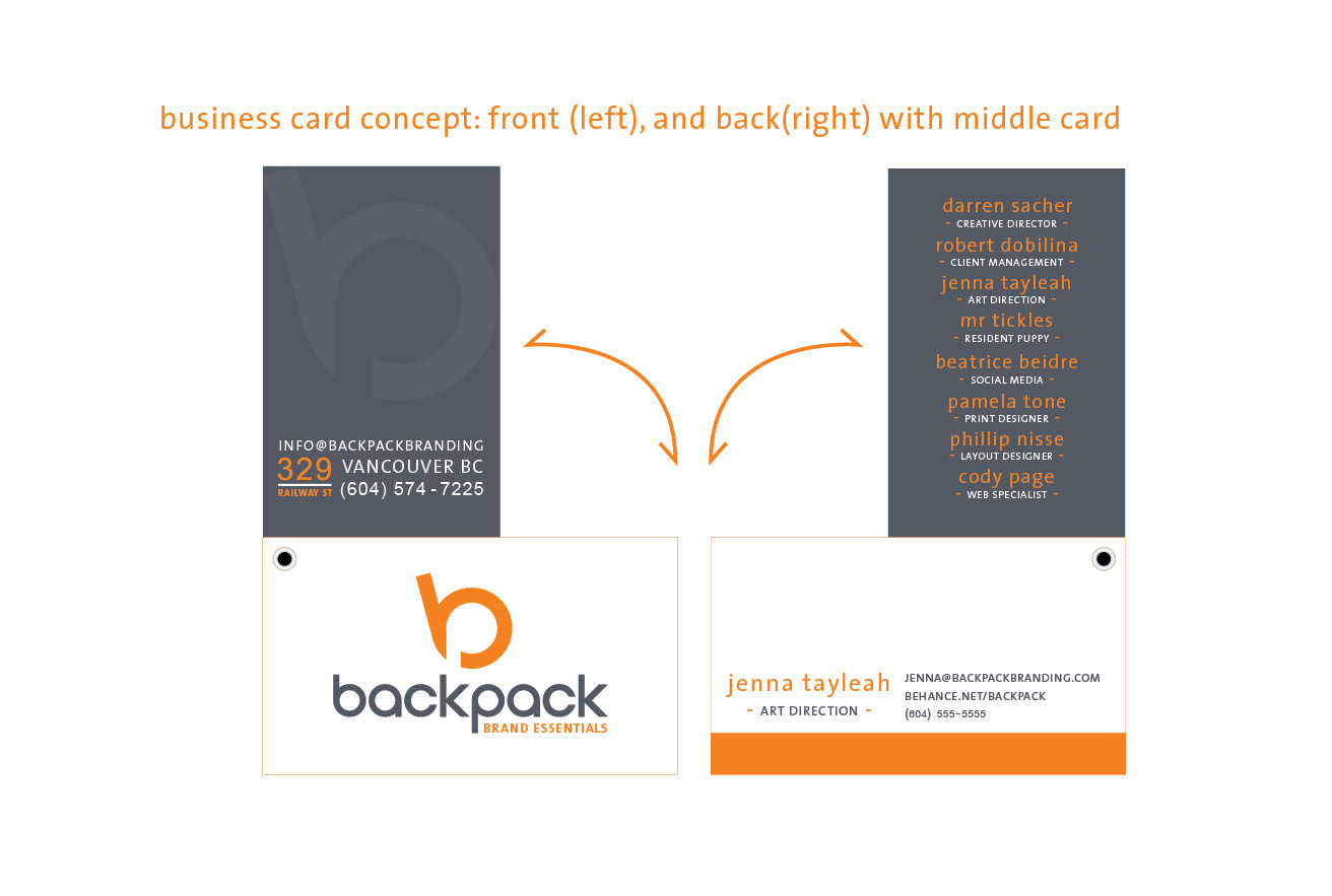 The following was done for a corporate communications design course. The brief was to develop a brand for a creative agency including: brand character, brand positioning, branding guidelines, and stationery package. Backpack Brand Essentials is a hypothetical branding and creative strategy firm located in Railtown, Vancouver. The agency will consist of 3-5 designers and a core management team of 3 (creative director, art director, client manager).